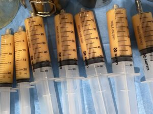 施術について:他院で挿入したシリコンバッグやヒアルロン酸の除去や、コンデンスリッチ豊胸による再建治療です。